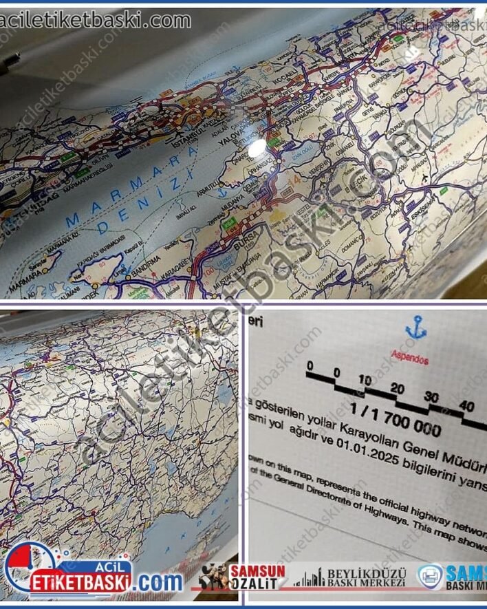 Karayolları Haritası | 130x70cm Vinil Branda – Suya & Neme Dayanıklı | Aynı Gün Kargo