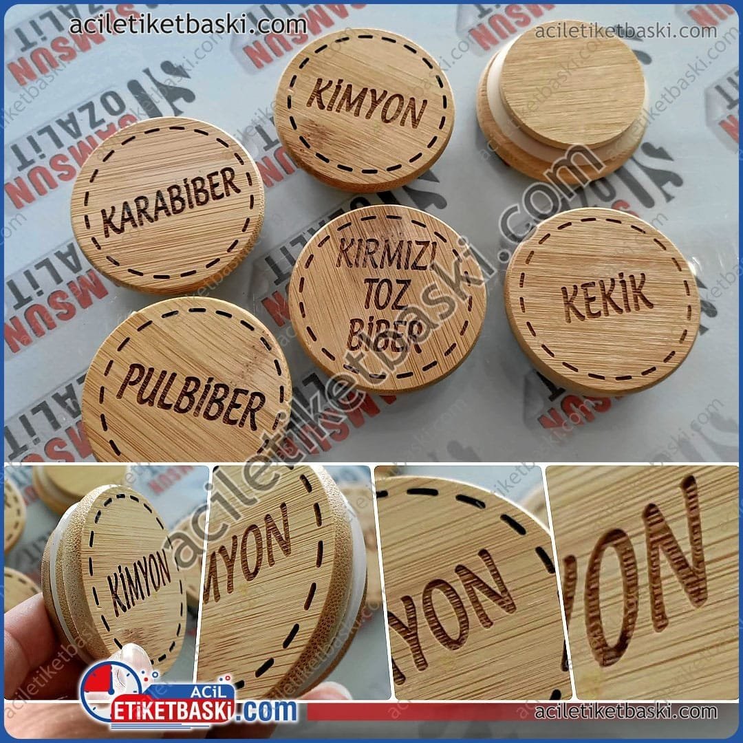 Ahşap kül tablalarına lazer kazıma tekniği ile kalıcı baskı yapılmaktadır.
