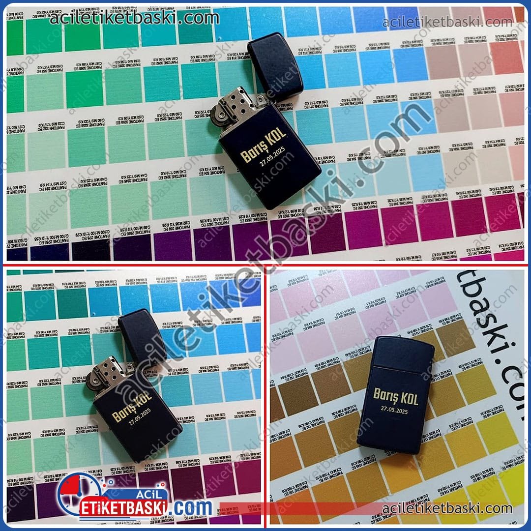 zippo çakmak, üzerine logo ve isim yazılır, gerçek zippo üzerine baskı, baskı için grafik tasarım desteği verilir, bekle ve al baskını, hızlı üretim yapılır, aynı gün kargo mümkün, kalıcı ve çıkmayan baskı