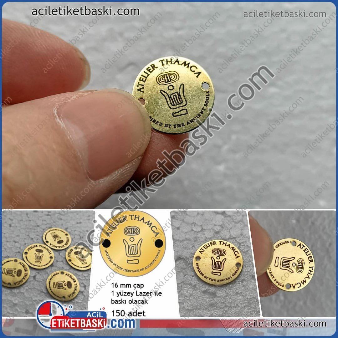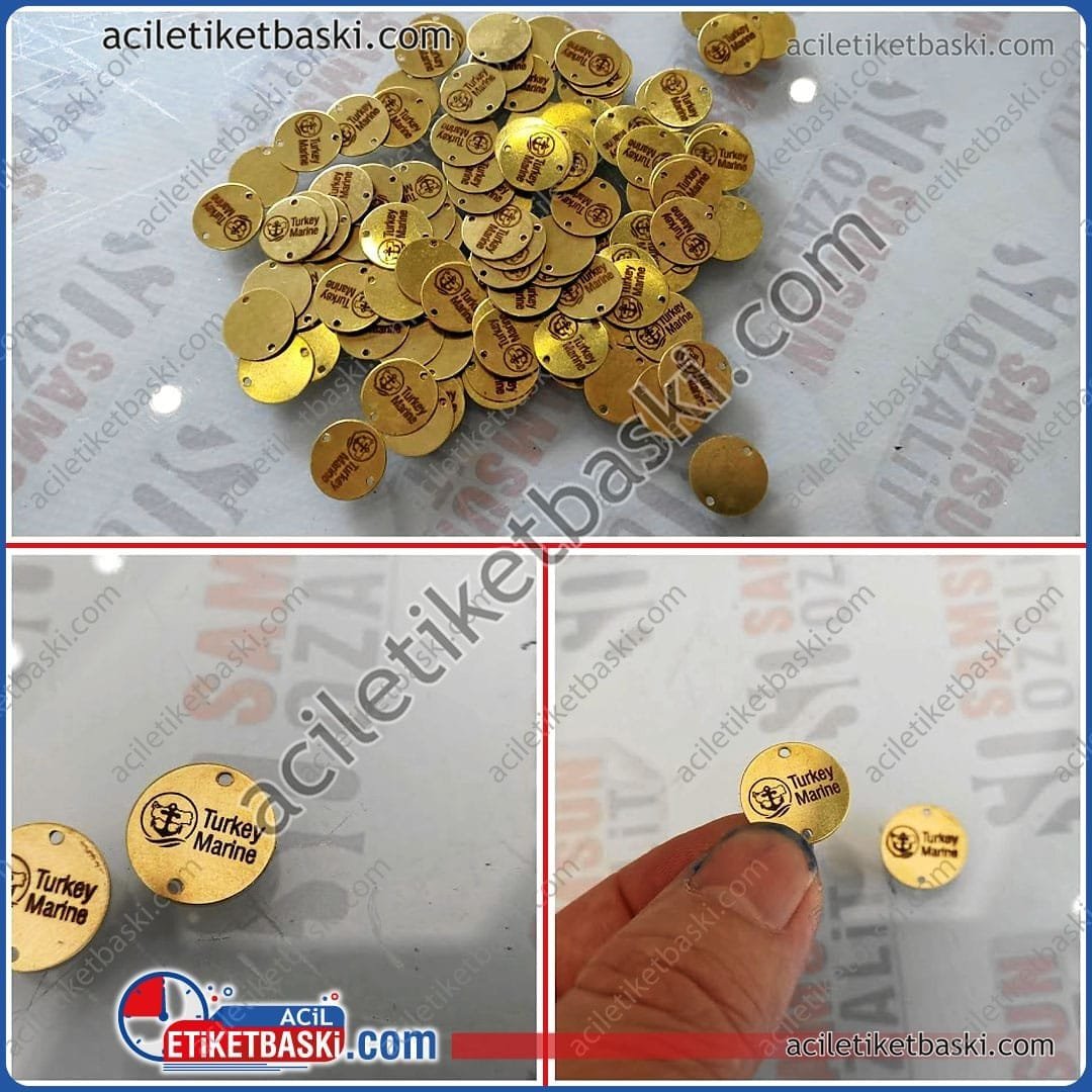 Gerçek pirinç malzemeden üretilen bu yuvarlak etiketler, markanızı ürünlerinize şık ve profesyonel bir şekilde eklemeniz için tasarlanmıştır. 15 mm çapındaki kompakt yapısı, çantadan takıya kadar pek çok üründe uyumlu kullanım sağlar. Lazer baskı teknolojisi sayesinde yazı ve logolar yüksek çözünürlükte işlenir; baskı yüzeyi hiçbir şekilde silinmez, soyulmaz veya aşınmaz. Ürün baskı dahil olarak sunulmakta olup, adet, ebat veya farklı şekil taleplerine göre özel üretim yapılabilir. Acil siparişlerde hızlı üretim ve aynı gün gönderim seçenekleri mevcuttur.